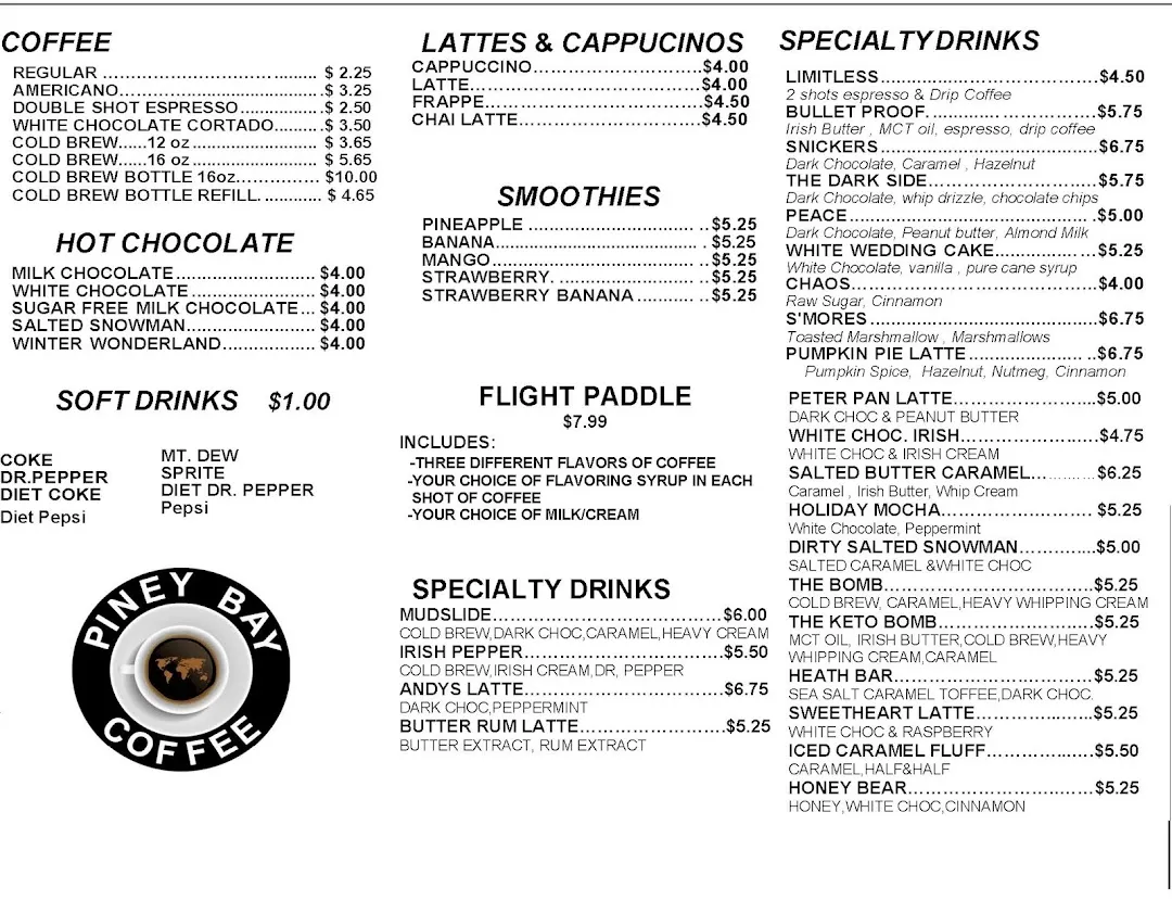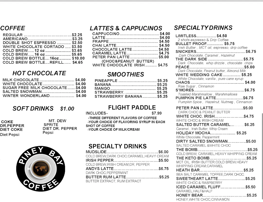 Piney Bay Coffee Company is a coffee shop located in Clarksville, United States. The average rating of this business is 4.70 out of 5 stars based on 133 reviews. The street address of this business is 117 S College Ave, Clarksville, AR 72830, United States. Piney Bay Coffee Company is closed on Sunday, and other days it is open from 06:00am to 06:00pm.