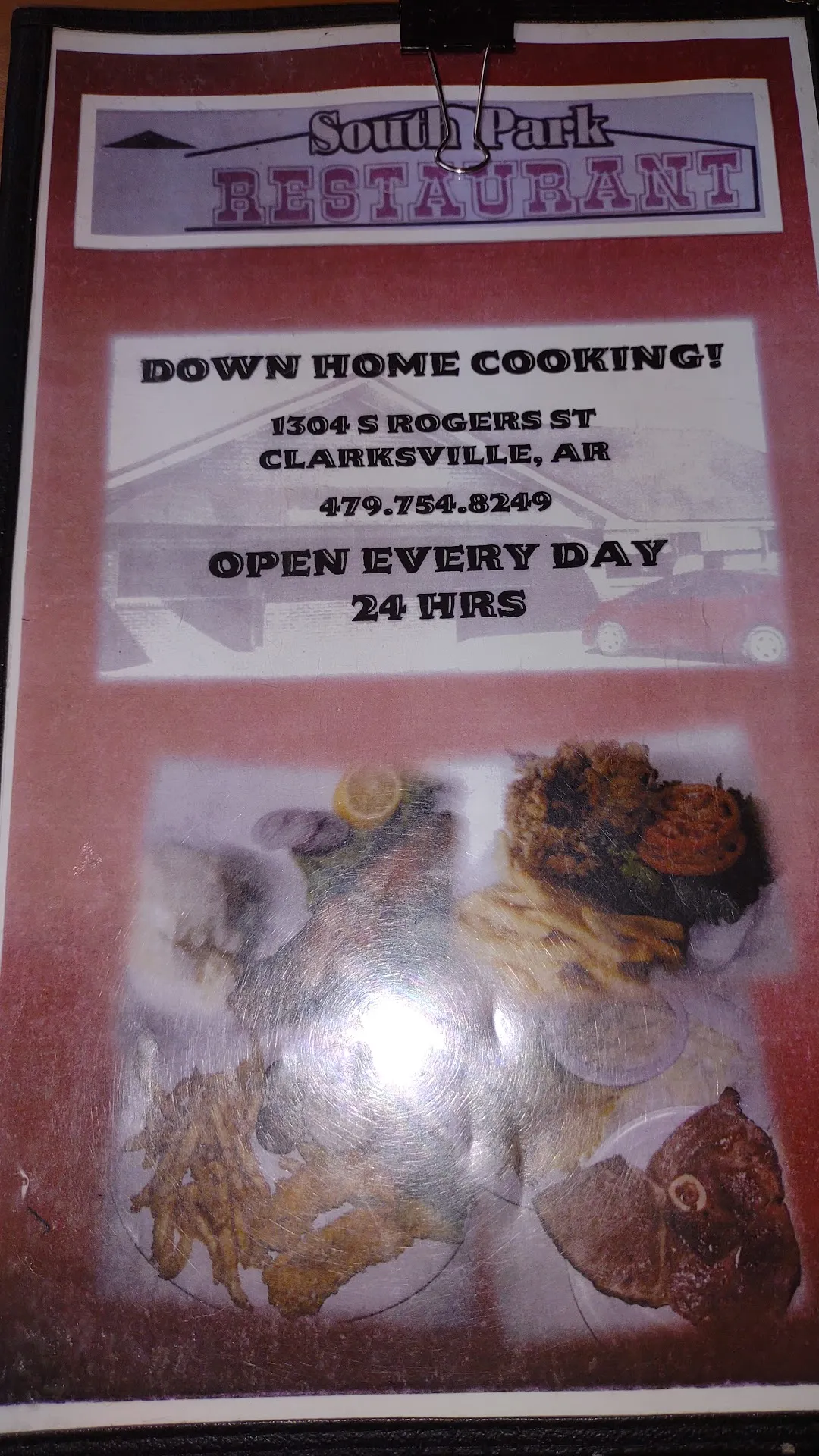 South Park Restaurant is a american restaurant and breakfast restaurant located in Clarksville, United States. The average rating of this business is 4.40 out of 5 stars based on 1257 reviews. The street address of this business is 1157 S Rogers St, Clarksville, AR 72830, United States. South Park Restaurant is open seven days a week from 06:00am to 09:00pm.