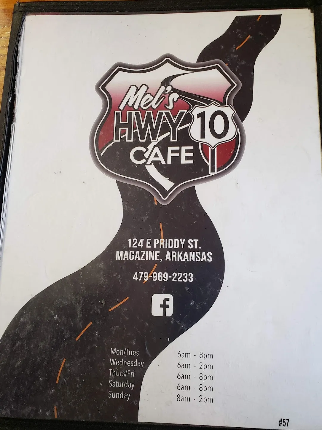 Mel's HWY 10 Cafe is a restaurant located in Magazine, United States. The average rating of this business is 4.60 out of 5 stars based on 123 reviews. The street address of this business is 124 E Priddy St, Magazine, AR 72943, United States. Mel's HWY 10 Cafe is closed on Monday, Tuesday and Wednesday, and other days it is open from 08:00am to 08:00pm.